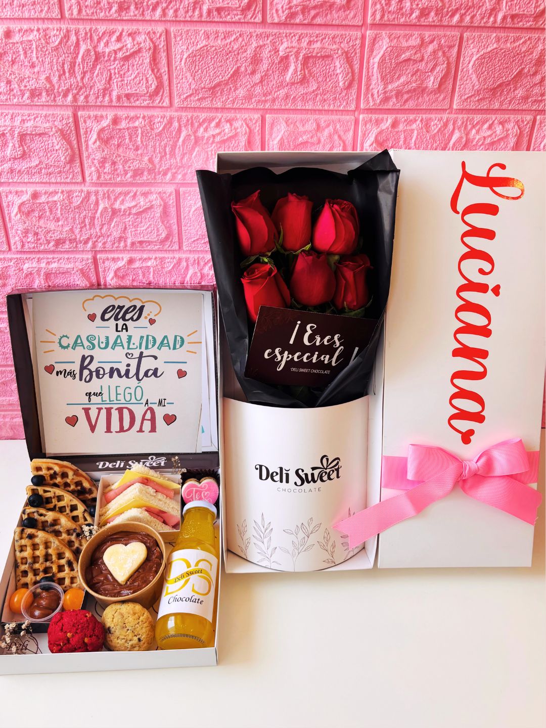 Caja de 6 Rosas Naturales con Nombre Personalizado