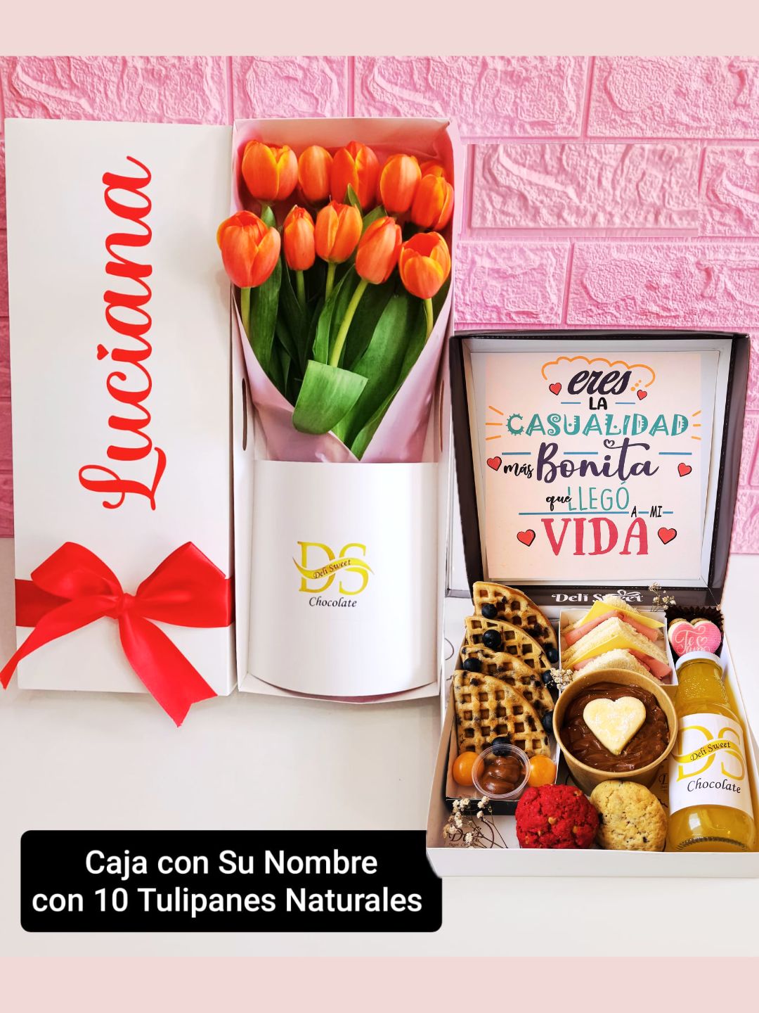 Una Caja con 10 Tulipanes Naturales con Nombre Personalizado